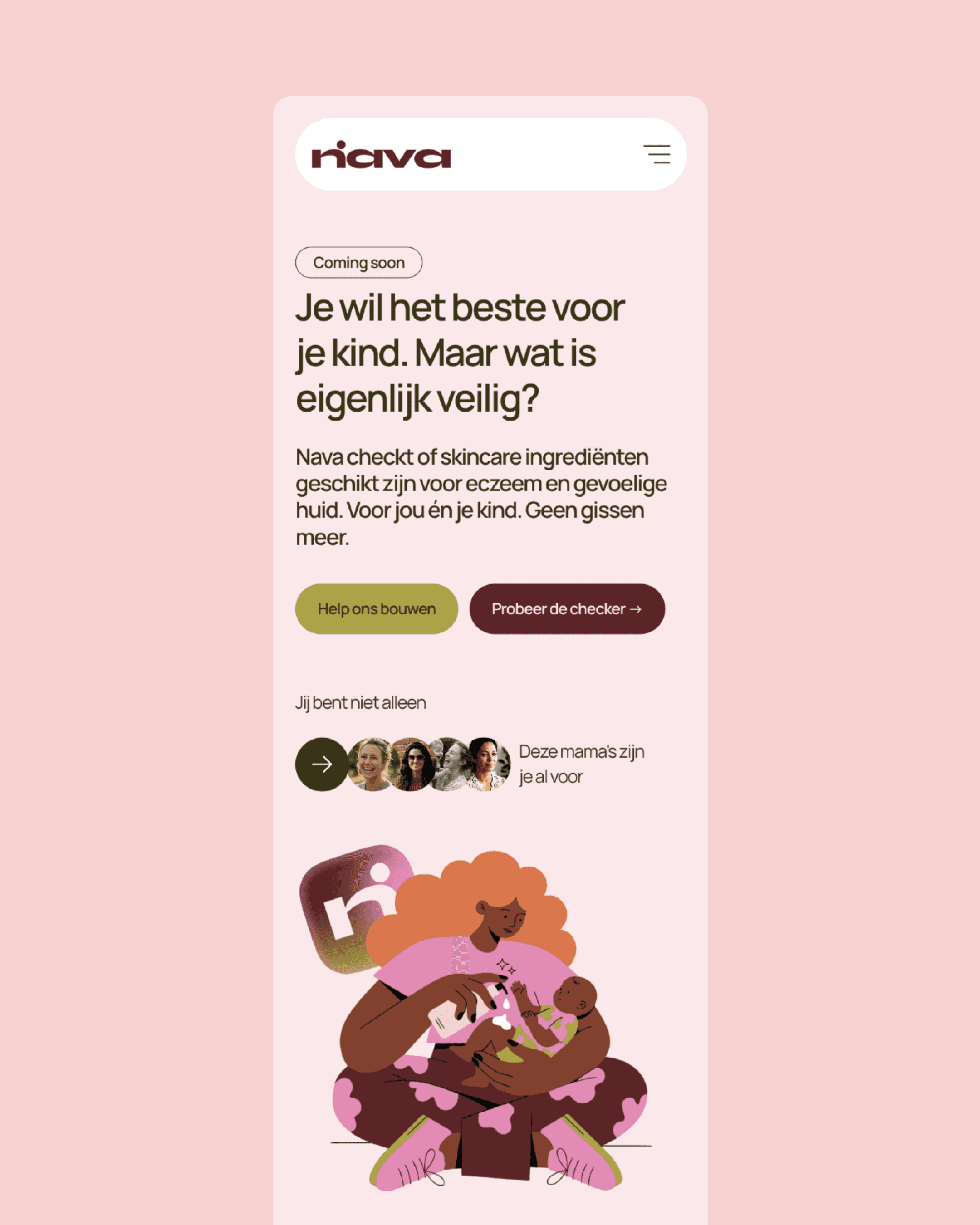 Elke mama kent het gevoel. Je staat in de winkel, pakt een product op en hebt geen idee of het veilig is voor de gevoelige huid van je kind. Nava lost dat op — een skincare checker die ingrediënten beoordeelt op geschiktheid voor eczeem en gevoelige huid. Voor mama's die genoeg hebben van gissen.